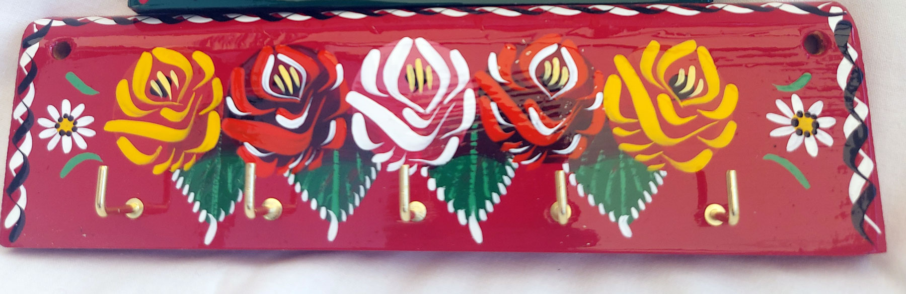 I have been boating for 37 years. The first 14 years on the KENNET AND AVON CANAL. Since 1999 we have been moored on the TRENT AND MERSEY CANAL.I paint items in the traditional 'Roses and Castles' style of canal folk art which I sell from this website. Ever since we fitted out our boat I have been interested in canal art and in 1998 taught myself to paint from a Tony Lewery video and since then have developed my own style.