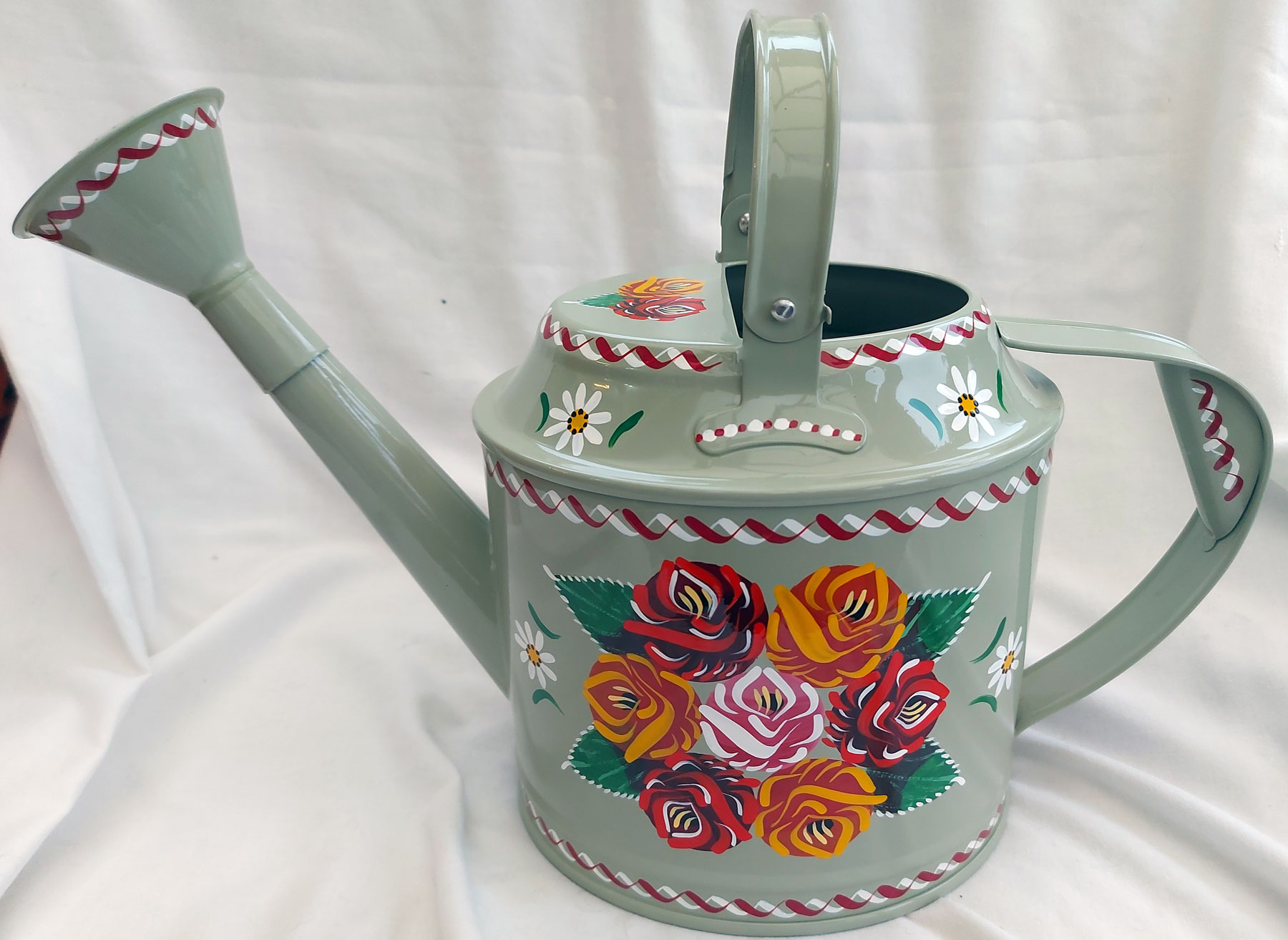 ![]() large 12ltr dark green/red metal |