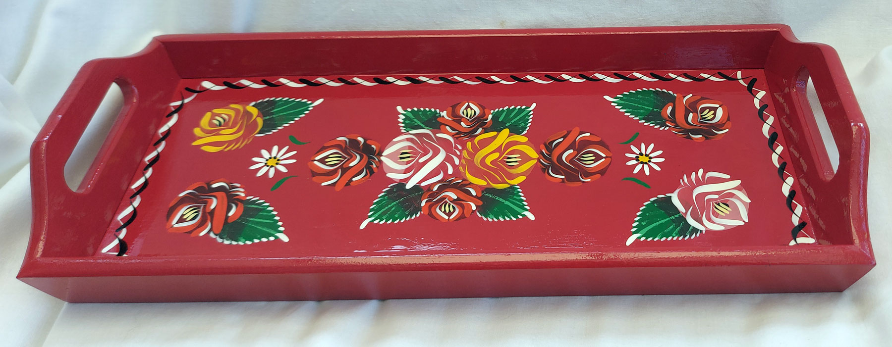 ![]() red wooden tray |