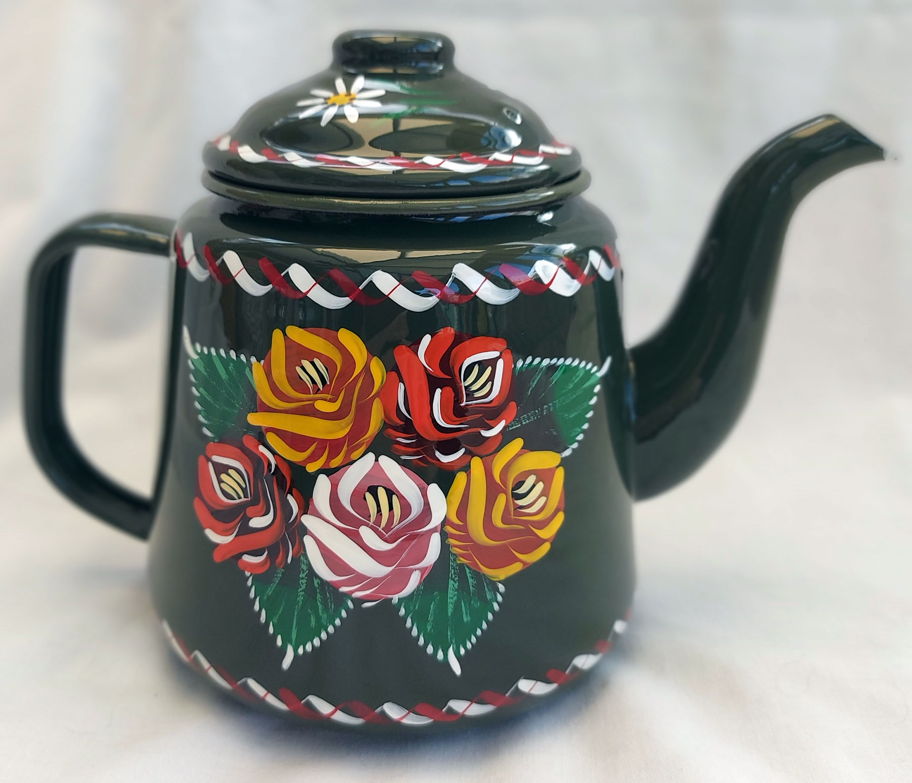 ![]() black enamel teapot |