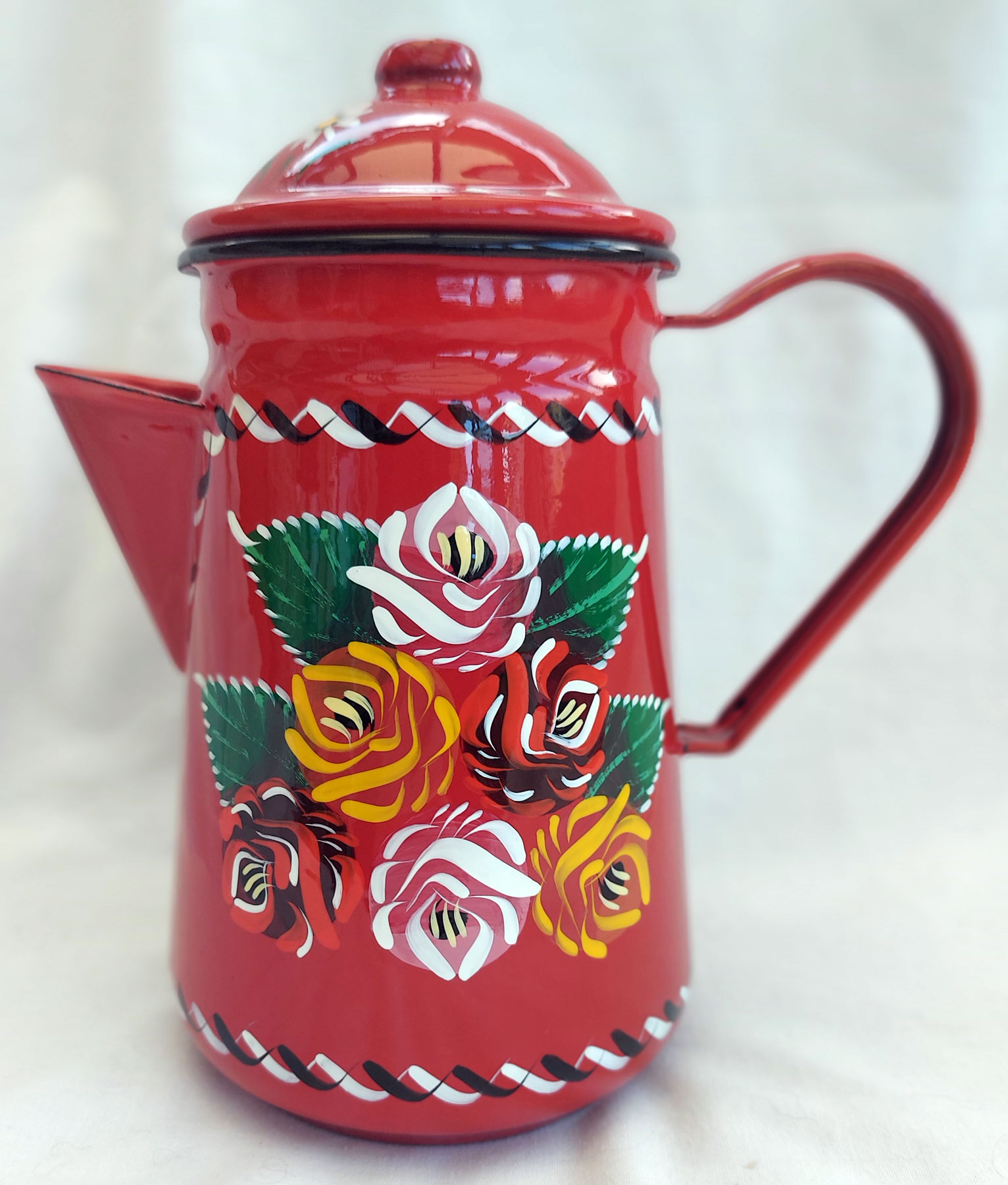 ![]() red enamel coffee pot |